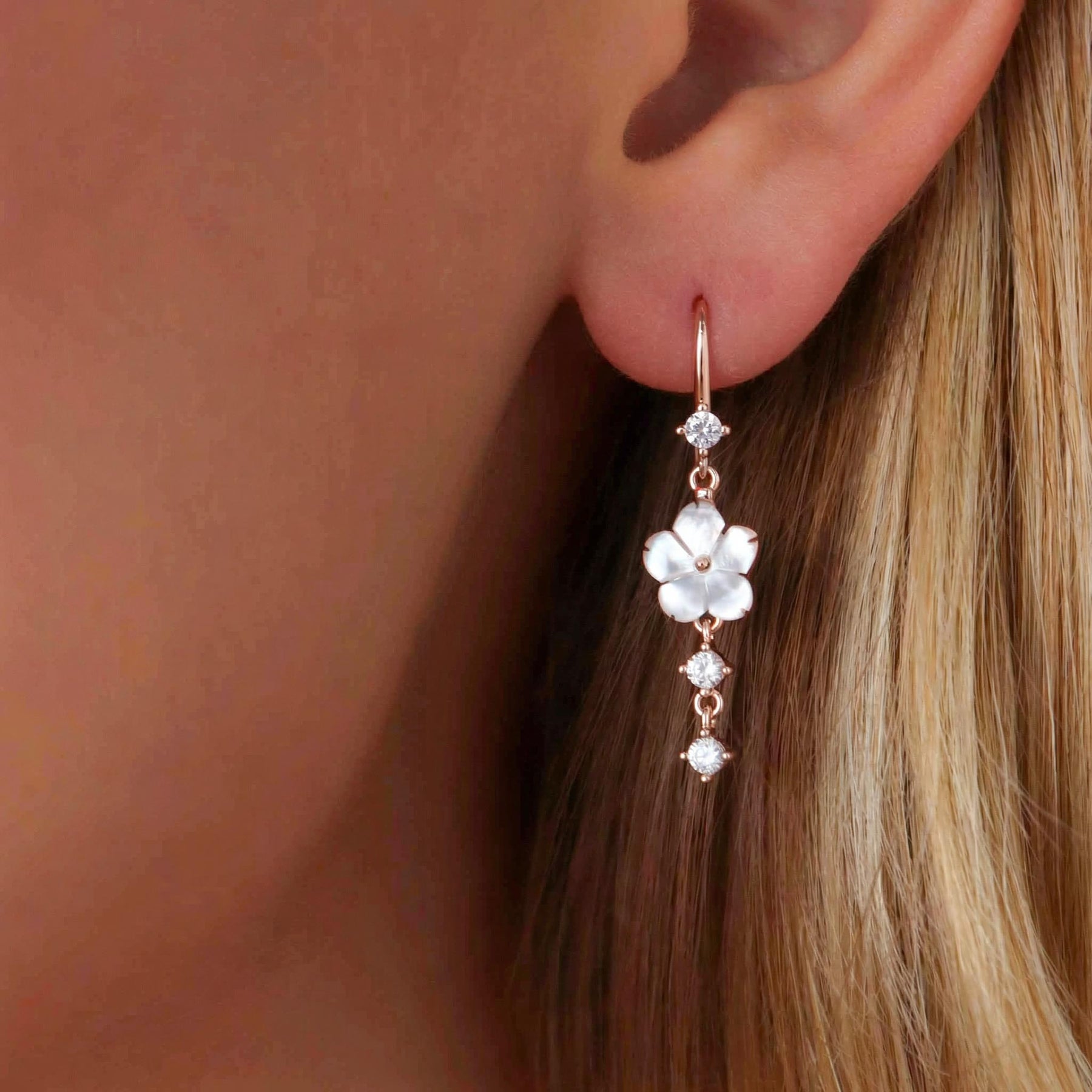 Nous fabriquons soigneusement tous les bijoux à la main. Nous n'utilisons que des fleurs en nacre véritable.