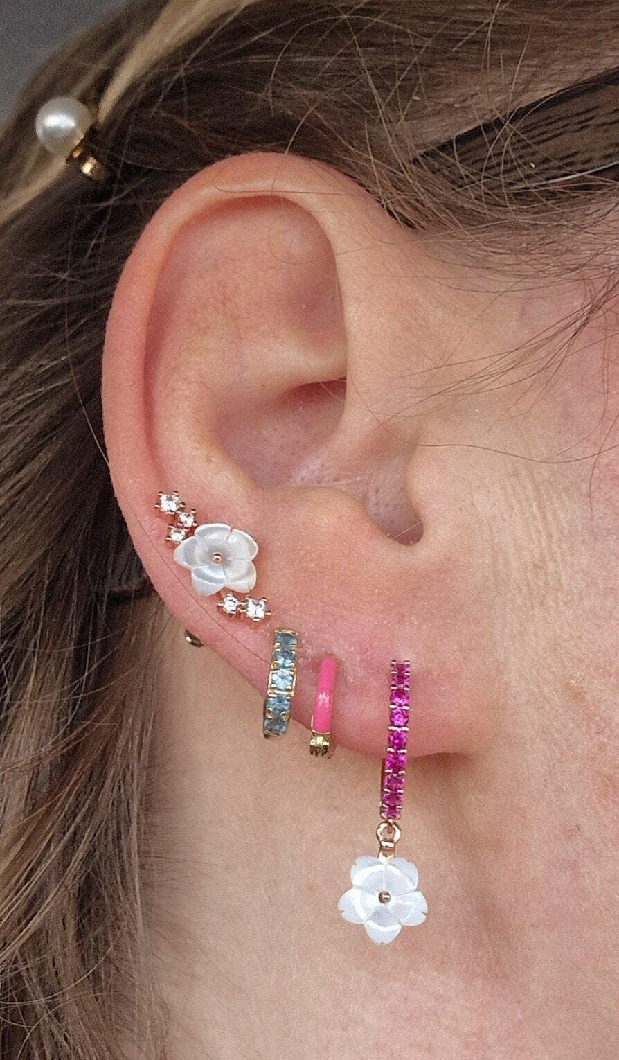 Nous fabriquons soigneusement tous les bijoux à la main. Nous n'utilisons que des fleurs en nacre véritable.